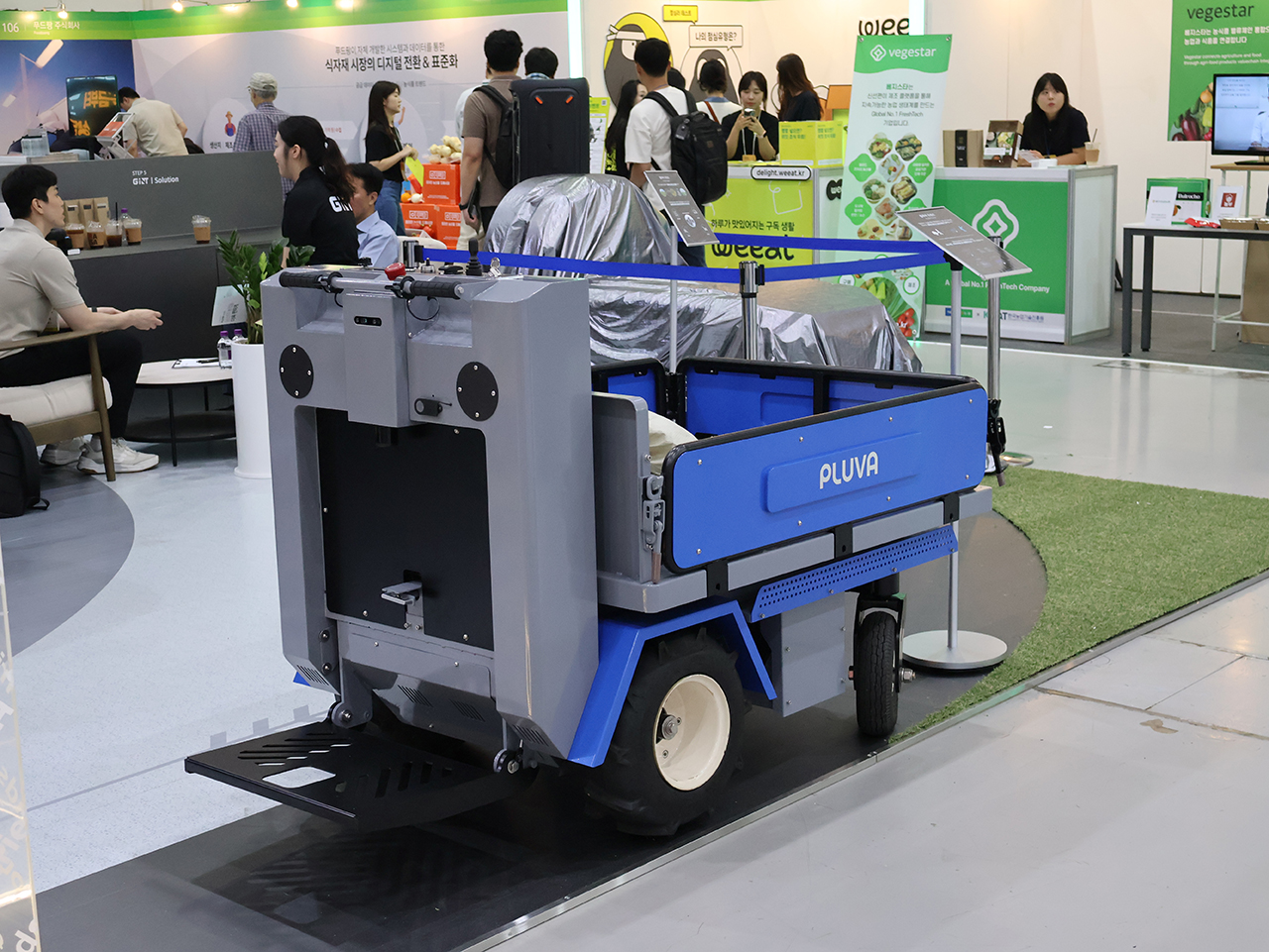지난번 대구 박람회에서도 잠깐 모습을 보인 플루바 캐디입니다. 팔로우미 기능을 통해 적재/운반의 노동 시간 20%를 절감하는 플루바 캐디가 23년 하반기 출시된답니다. 덤프+리프트 기능도 있어 최대 하중 400kg을 견딜 수 있어요. 수확철 작업지에서 작업자를 따라오는 팔로우미 기능을 통해 운반차 운전에 신경쓰지 않고 편하게 작물을 옮길 수 있습니다.