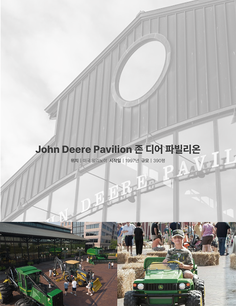 맞아요. 국내에서는 정말 참고할만한 레퍼런스가 농업 분야에서는 없었고 그나마 유사한 업계가 자동차 업계의 문화적 사례를 참고했어요. 일반적인 식음 공간 단지보다 자동차 쪽이 공간 스케일이나 기계와 사람이 스며드는 문화를 만들어내는데 차용할만한 자료가 많았어요.🚗 농기계만의 기능적인 부분들은 국내 대리점들을 보고 필요한 기능과 시설을 참고했어요. 우리나라의 경우 농민이라고 하면 중년의 어르신을 떠올리지만 외국은 하나의 직업군으로 자리 잡고 있고 전시회에 어린아이를 데리고 가족이 함께 오기도 하고 단체로 현장학습으로 오기도 해요. 고령화된 산업군이 아닌 친숙하면서도 필수적인 산업이라는 느낌이죠.🌿
