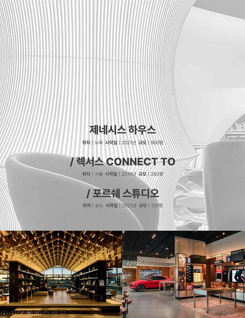 2단계는 새로운 상품들, 예를 들면 다른 기업과 협업할 수 있고 B2B적인 사업이 일어날 수 있는, 더 많은 고객들에게 보여줄 수 있는 공간으로 구상 중입니다.🕋 2단계에서는 특히 공간의 확장성과 아이덴티티를 잘 살릴 수 있도록 공간 디자인을 하고 있어요. 공간의 연계성을 염두해(전시-판매-식음-상담의 교류 활성화) 긴 사선축을 이용하여 고객 체험 동선의 다양화가 이루어질 수 있도록 설계 하였죠.