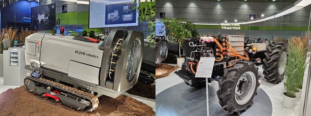 입구를 들어서면 보이는 가장 큰 부스에서는 거대한 로봇과 전기 트랙터가 눈에 띈다. 애그테크 스타트업 긴트가 개발하고 있는 제품이다. 과수원 무인 자율 방제 로봇 ‘플루바 SS’는 카메라, GPS와 AI가 적용돼, 자율주행차 수준의 정밀한 이동이 가능하다는 설명이다. 스스로 과수원 구조를 학습해 약제를 골고루 살포하며, 작업을 마치면 스스로 차고지로 복귀한다. 작업자는 스마트폰으로 작업을 지시하고 결과 보고서를 확인할 수 있다.